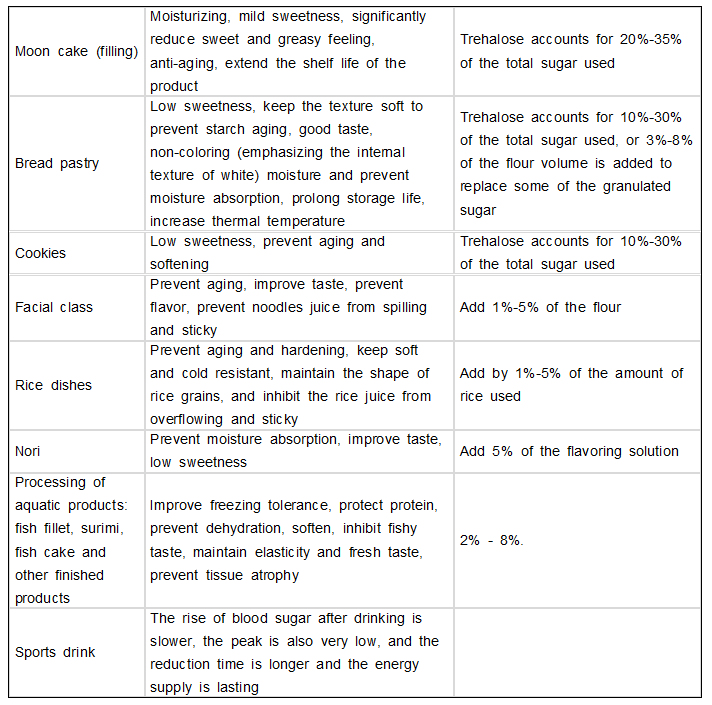 트레할로스는 비환원당으로, 식품에서 갈변을 일으키는 메일라드 반응에 참여하지 않습니다.